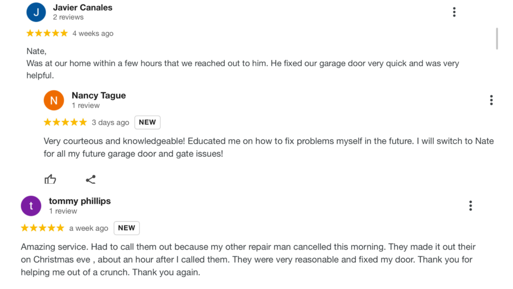 “Scott fixed our garage door issues from top-to-bottom. Very happy with the results! Thanks Scott!”